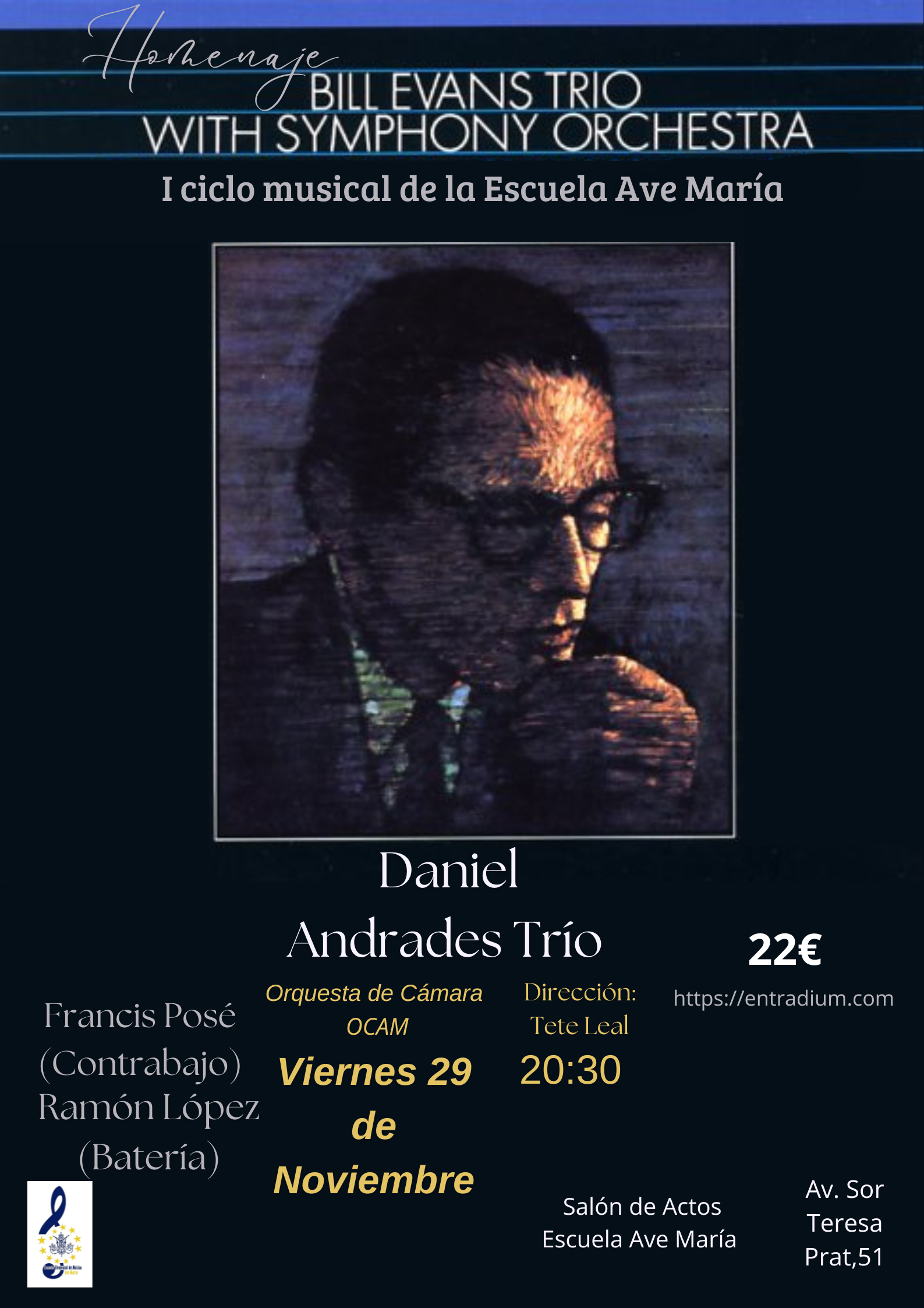 Y claro está, si se va a recordar el disco de Evans con la orquesta sinfónica, el trío ha de estar arropado por otra, y en este caso es la OCAM (Orquesta del Centro de Arte y Música Moderna), que dirigirá otro maestro malagueño cual es el multidisciplinar, saxofonista, compositor y educador Tete Leal, que tiene en su haber la grabación del disco “Five Elements” que combina jazz, música clásica y electrónica.